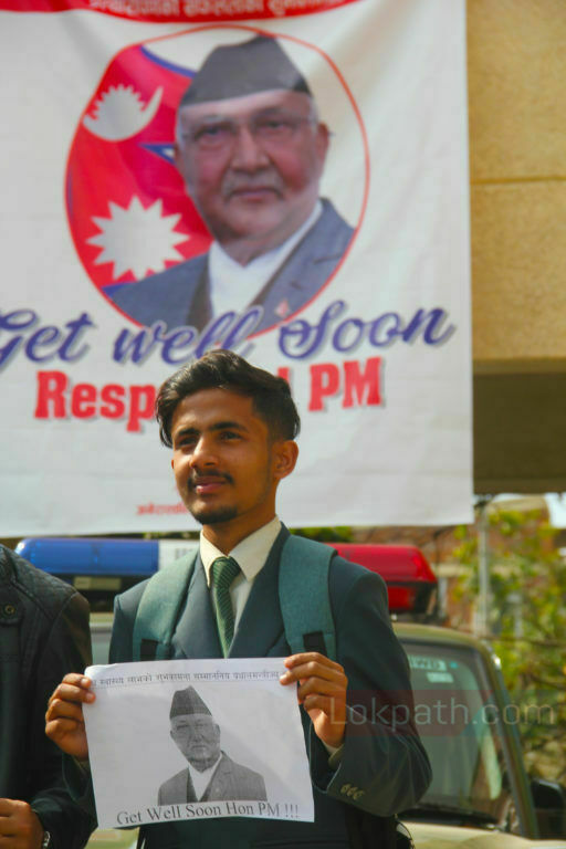 बिहानैदेखि शिक्षण अस्पतालमा प्रम ओलीको सफल मिर्गौला प्रत्यारोपणको कामना गर्दै नेता, कार्यकर्ता, विद्यार्थी, विभिन्न संघसंस्थाका व्यक्तित्व साथै सर्वसाधारणको भीड लागेको थियो ।