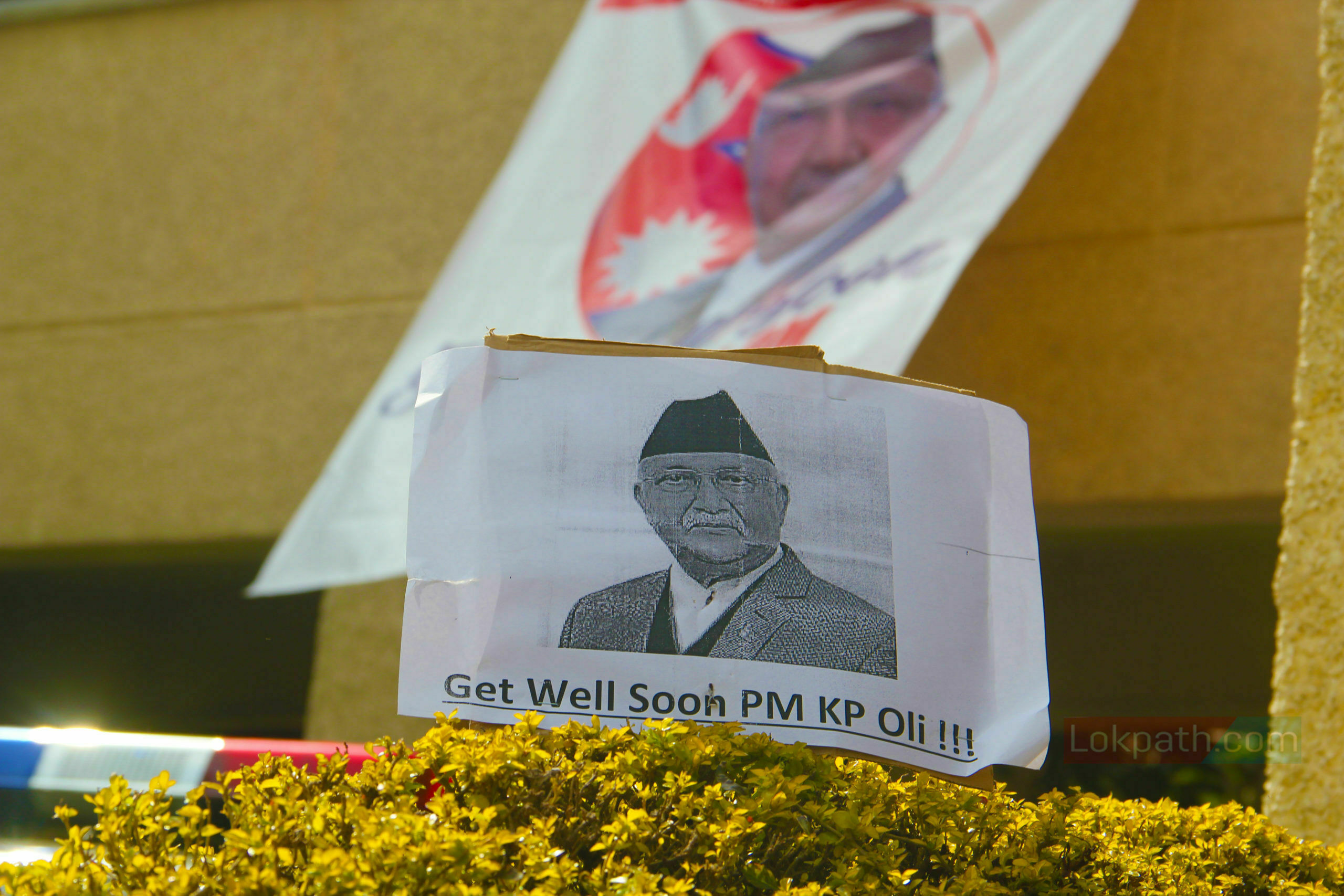 त्रिवि शिक्षण अस्पताल महाराजगन्जका कार्यकारी निर्देशक प्रा.डा. प्रेमकृष्ण खड्काका अनुसार प्रधानमन्त्रीको स्वास्थ्य अवस्था सामान्य छ । उहाँ बोल्न सक्नुहुन्छ, तर दुखाइ कम गर्न औषधि दिएको हुँदा आराम गराइएकोले बोल्न दिइएको छैन ।