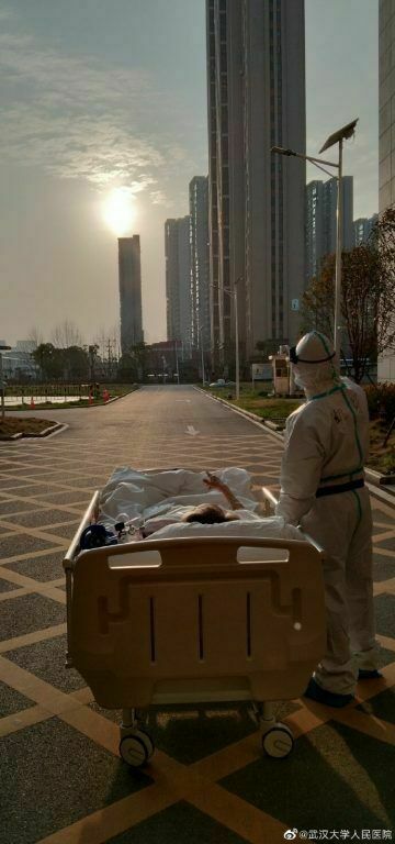Wuhan Uni hospital. A twenty-something doctor from Shanghai was taking a 87yo patient who'd been hospitalised for a month to take a CT scan.