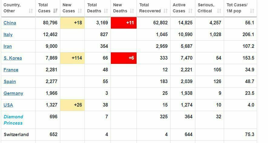 यसैगरी इरानमा ३५४, उत्तर कोरियामा ६६, फ्रान्समा ४८, स्पेनमा ५५ जनाको मृत्यु हुँदा अमेरिकामा पनि ३८ जनाको मृत्यु भइसकेको छ ।