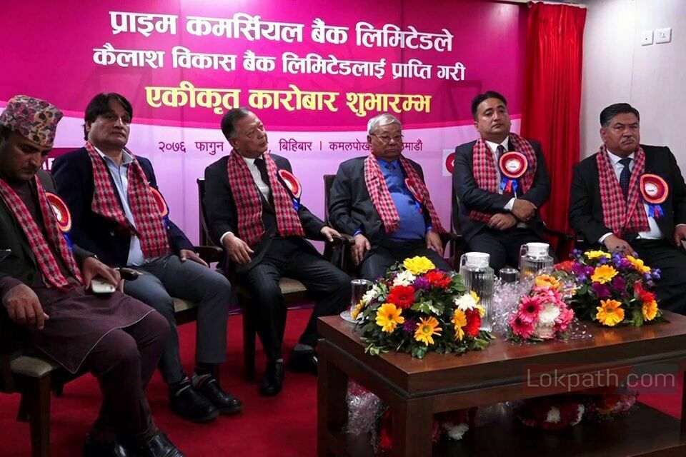 बिहीबार काठमाडौंमा एक कार्यक्रम अयोजना गरी बैंकले एकीकृत कारोबारको औपचारीक घोषणा गरेको हो । गत असार २० गते भएको सम्झौता अनुसार कैलाश विकास बैंकलाई प्राइम कमर्सियल बैंकले १०० बराबर ९४ दरको स्वाप रेसियोमा प्राप्ति गरेको हो । प्राइम र कैलाश गाभिएपछि बनेको प्राइम कमर्सियल बैंकको चुक्ता पूँजी करिब १४ अर्ब रुपैयाँ पुगेको छ भने पूँजीकोष करिब १९ अर्ब पुगेको छ ।