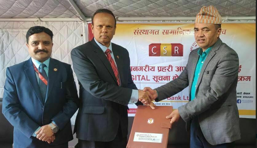 काठमाडौं । महालक्ष्मी विकास बैंक लिमिटेडले सुचना बोर्ड जडान गरेको छ । बैंकले आफ्नो सामाजिक उत्तरदायित्व अन्तर्गत विभिन्न कार्यक्रमहरु गर्दै आइरहेको छ । सोही कार्यलाई निरन्तरता दिँदै बैंकले आइतबार महानगरीय प्रहरी अपराध महाशाखा टेकुमा पि फो लेड सूचना बोर्ड जडान गरेको हो ।