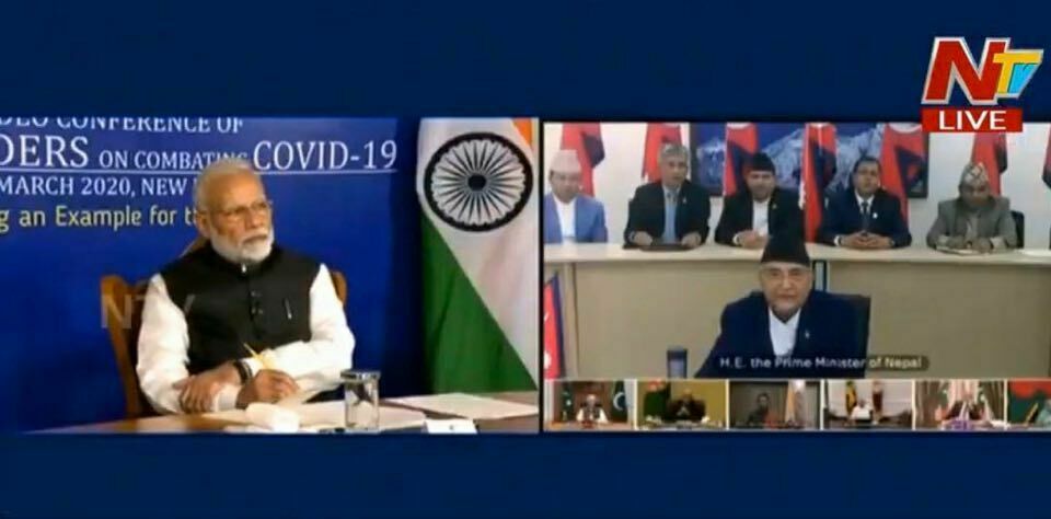 नेपालका प्रधानमन्त्री केपी शर्मा ओलीलाई स्वास्थ्यलाभको कामना गर्दै कोरोनाबारे सार्क नेताबीच ‘भिडियो कन्फ्रेन्स’ सुरु भएको थियो ।