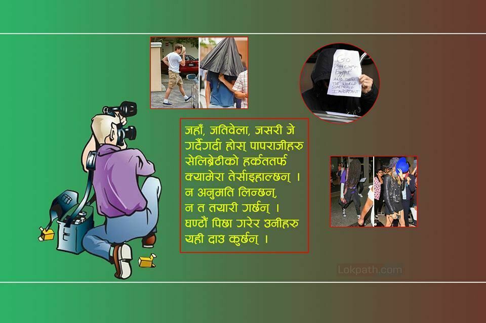 पापराजीलाई न उनीहरुको अनुमति चाहिन्छ न त फोटो खिच्नलाई कुनै तयारी नै । जहाँ, जतिवेला, जसरी, जे गर्दै गर्दा सेलिब्रेटी देखापर्छन् पापराजीहरु फोटो खिच्न तयार भइहाल्छन् । उनीहरु दाउ मात्रै हेर्छन् । बुझ्ने भाषामा भन्दा बाटोघाटोमा ढुकेर उनीहरु त्यस्ता पल कैद गर्छन् जुन प्राय सेलिब्रेटी छुपाउन चाहन्छन् ।