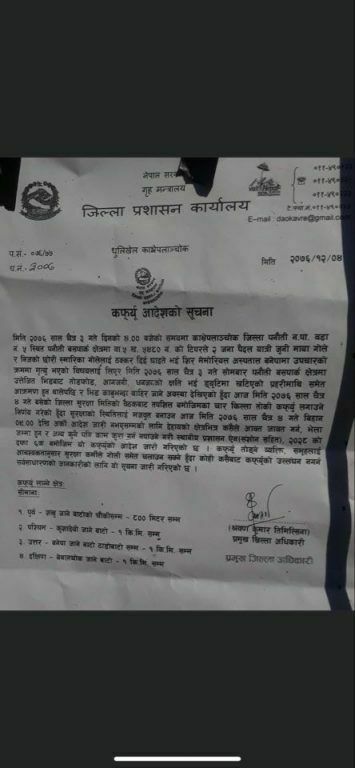 काठमाडौं । सोमबार साँझ टिप्परको ठक्करबाट दुई जनाको मृत्यु भएपछि काभ्रेको पनौतीमा बढेको तनाव र त्यसबाट उत्पन्न हुनसक्ने परिस्थितीलाई मध्यनजर गर्दै यतिबेला त्यहाँको प्रशासनले पनौतीमा कर्फ्यू लगाएको छ ।