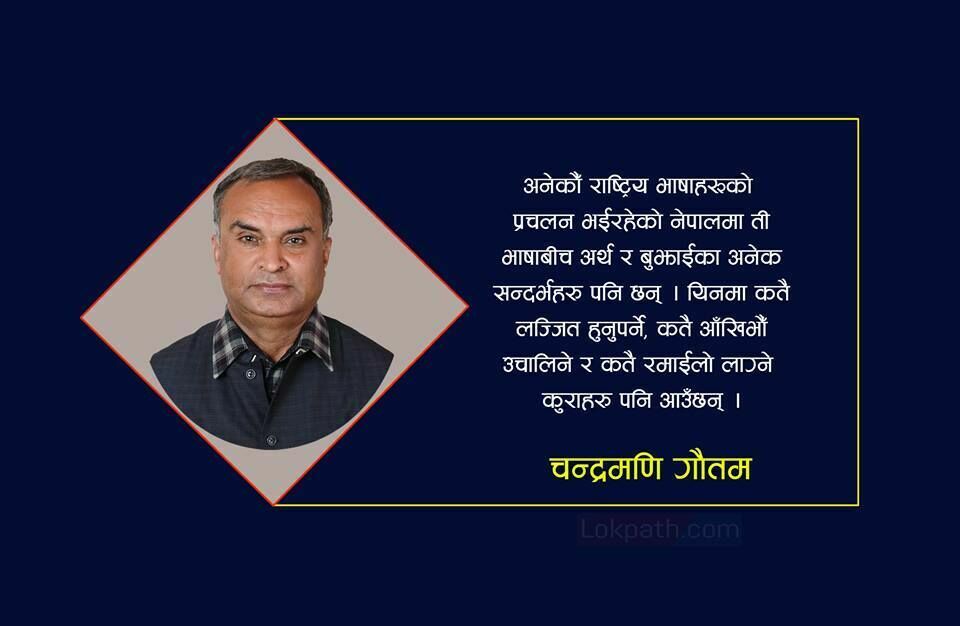 हाम्रो इन्द्रेणी राष्ट्र नेपाल अनेकौँ जाती, भाषा र संस्कृतिरुपी फूलबारी हो । यी सबै फूलहरूको विविधता नै हाम्रो पहिचान, सौन्दर्य, सुवास र सम्पदा हो । यो पहिचानबाट कहिलेकहीँ रमाईलो प्रकट पनि हुनेगर्छ । अनेकौ राष्ट्रिय भाषाहरूको प्रचलन भईरहेको नेपालमा ती भाषाबीच अर्थ र बुझाईका अनेक सन्दर्भहरु पनि छन् ।