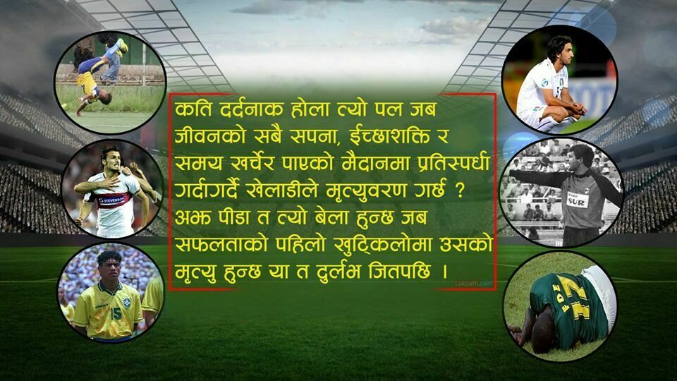 काठमाडौं । फुटबल खेलमा सधैं जित, उपाधि, मेडल, कप, रमाइलो, उत्साह मात्र हुँदैन । कहिलेकाहीँ खेल्दाखेल्दै घाउचोट लाग्ने, दुर्घटना हुने, स्वास्थ्य समस्याका कारण लामो समय मैदानबाहिर रहनुपर्ने जस्ता अड्चनहरु पनि धेरै आउँछन् खेलाडीको जीवनमा । कतिपय खेलाडीहरुले त खेल्दा खेल्दै मैदानमै ज्यान समेत गुमाएका छन् ।