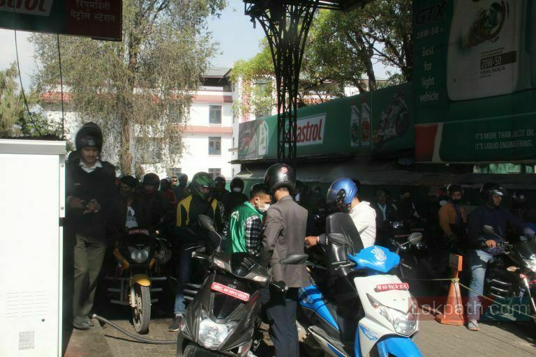 हुँदाहुँदै अब पेट्रोल समेत सहज नपाइने अवस्था आएको छ । यस्तो कारणले गर्दा उपभोक्ता आत्तिएका छन् । नाकाबन्दीमा आउँछ आउँछ भन्दाभन्दै सरकार लाचार भएको देखेका आम नागरिकले यसपाली पनि त्यस्तै त हुने होईन भन्दै आशंका गरेका छन् । उपत्यकाका पम्पहरूमा सोमबार साँझदेखि पेट्रोल लिन लाइन लागेको थियो।