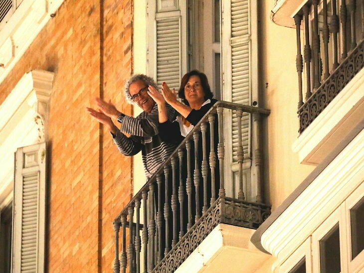 मड्रिडसहित केहि शहरहरुमा आठ बजेपछि मानिसहरु आफ्नो घरको बार्दली, सिँढीहरुमा आएर सिठी, ताली बजाएर कोरोनाको महामारीसँग लड्ने सन्देश दिइरहेका छन् ।