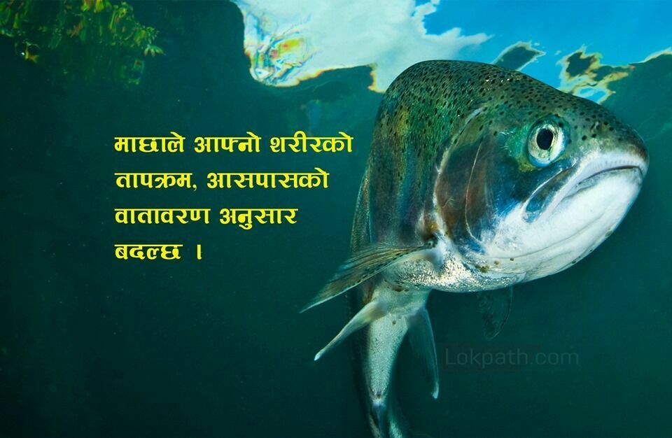 १०. माछाले आफ्नो शरीरको तापक्रम, आसपासको वातावरण अनुसार बदल्छ ।