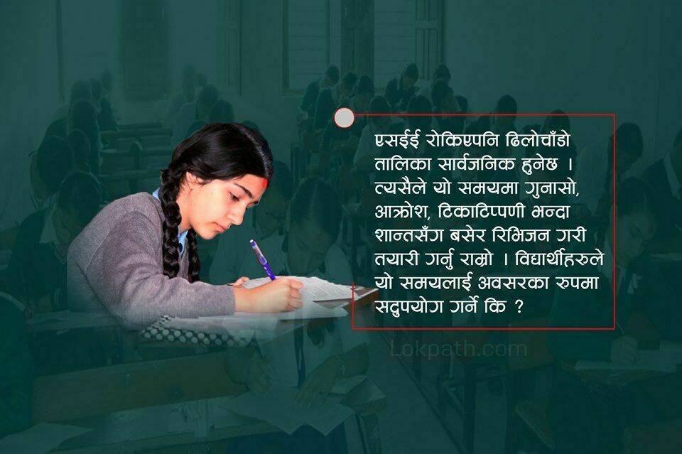 ‘भीडभाडबाट टाढा रहने, सार्वजनिक स्थानमा अत्यावश्यक अवस्था बाहेक नजाने बरु छुटपुट पाठ दोहो¥याएर अध्ययन गर्ने, लेखेर तयारी गर्ने र सेल्फ क्वारेन्टाइनमा बसेर मज्जाले तयारी गर्न सकिन्छ ।’