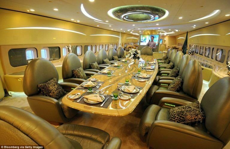 बाहिर सुनौलो देखिने विमानको भित्री भाग पनि पूरै सुनले नै बनाइएको छ। यात्रुहरुले कुनै फङ्सन गर्न सकुन भन्ने हेतुले उनले विमानभित्र एउटा कन्सर्ट हल बनाएका छन् ।