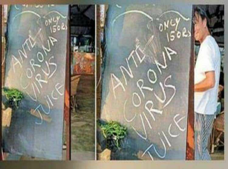 भारतको केरलामा यस्तै एउटा घटना सार्वजनिक भएको छ । त्यहाँ रहेको एक पसलमा एन्टी कोरोना जुस भनेर बेचिइरहेको छ ।