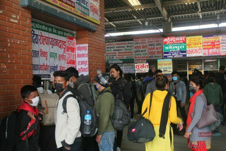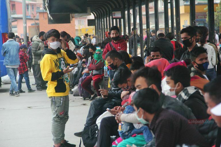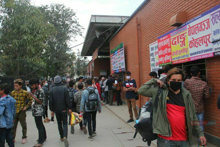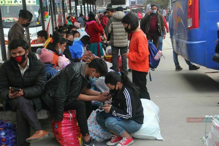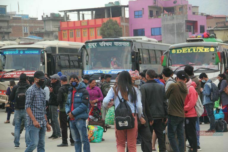 काठमाडौं । यो दृश्य काठमाडौंको गोंगबुस्थित नयाँ बसपार्कको हो । यहाँ सधैंजसो यात्रुहरुको चहलपहल भइरहन्छ । तर, आज सामान्य दिन भन्दा अलि बढी नै व्यस्त देखियो बसपार्क ।