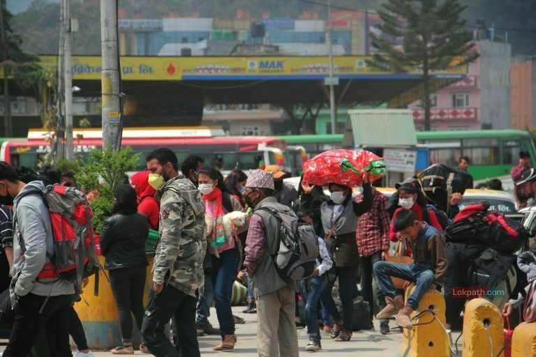 बसपार्कमा देखिएको यात्रुहरुको चहलपहल :