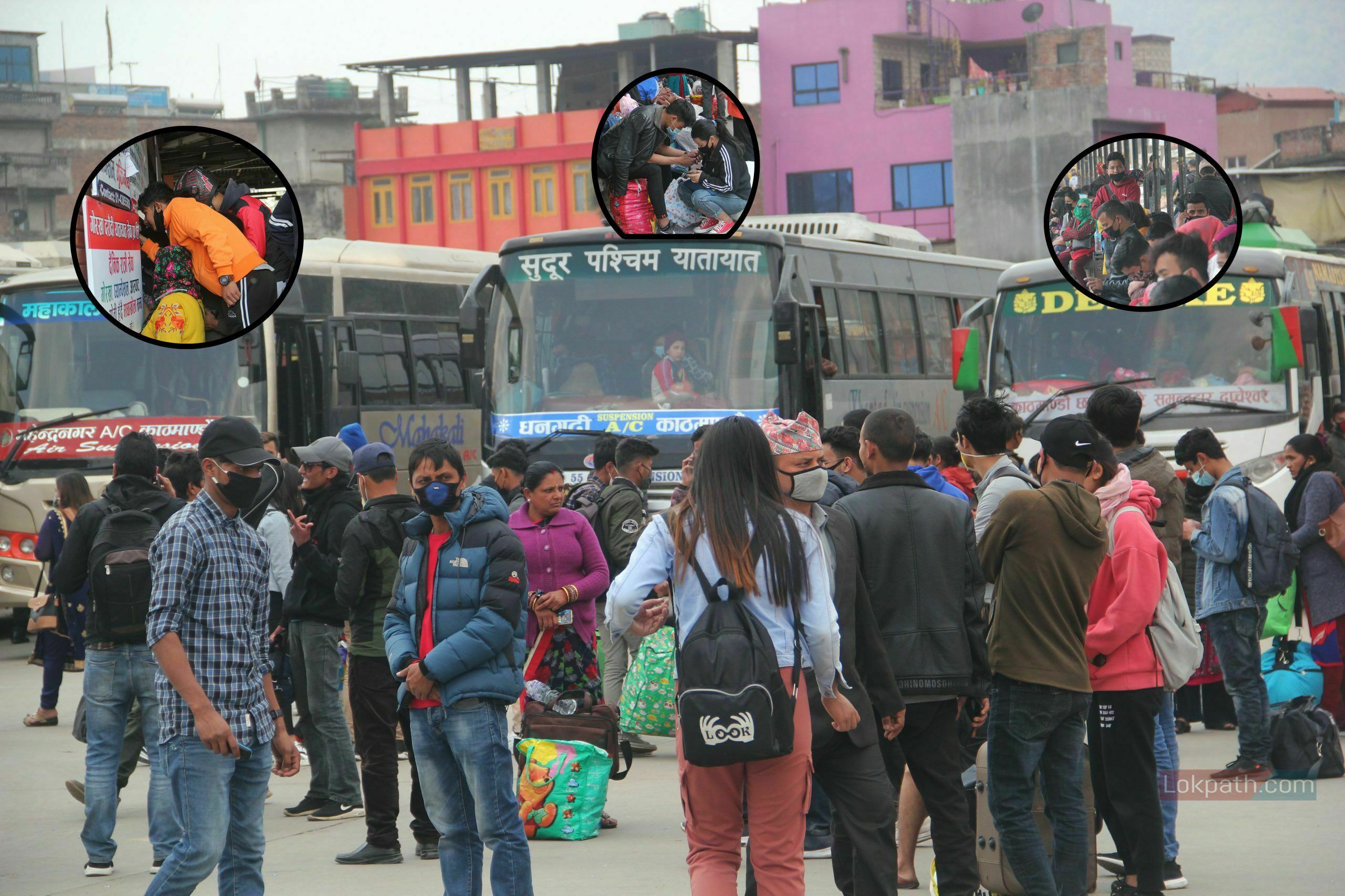 बसपार्कमा देखिएको यात्रुहरुको चहलपहल :