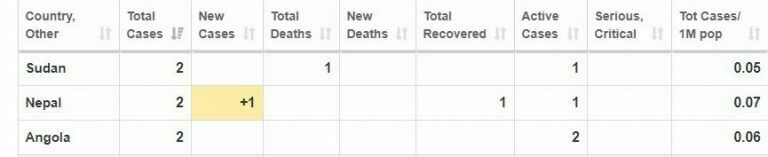 काठमाडौं । कोरोनाबारे जानकारी दिने वेभसाइट व्लडोमिटर्स ईन्फो कोरोनाभाइरसले नेपालमा संक्रमित संख्या २ जना देखाएको छ ।