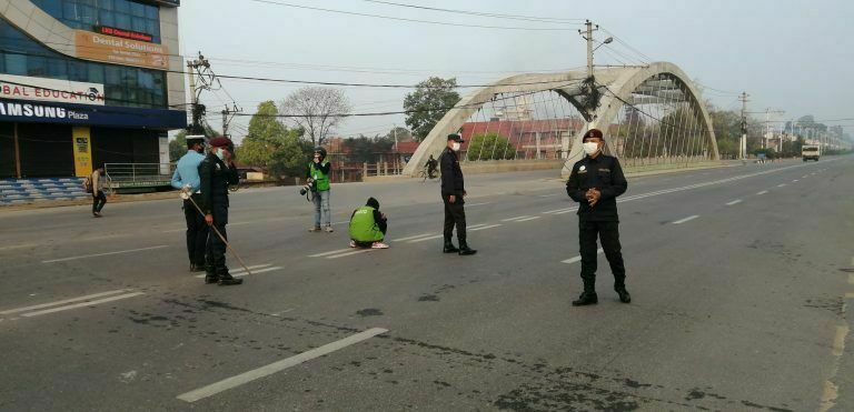 यो रोकसँगै काठमाडौं सुनसान बनेको छ । सडकमा अत्यावश्यक सवारीसाधानबाहेक अरू गुड्न दिइएको छैन । नाकामा पनि सुरक्षा वयवस्था निकै कडा पारिएको छ । एक जिल्लाबाट अर्को जिल्ला प्रवेशमा रोक लगाइएको छ । फोटोमा हेर्नुहोस् यस्तो देखियो बिहानको काठमाडौं : काठमाडौंको नाका नागढुंगा, बालाजु, सामाखुसी लाजिम्पाट, नयाँ बानेश्वर, जमल को दृश्य