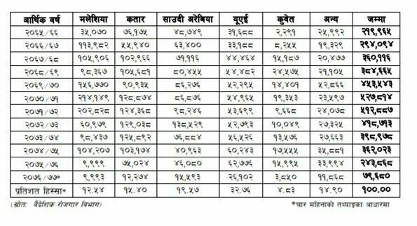 वैदेशिक रोजगारीमा गएका कामदारहरुको यस्तो छ देशगत विवरण