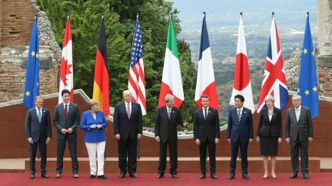 बेलायत, फ्रान्स, जर्मनी, इटली, जापान र क्यानेडा समावेश जी ७ राष्ट्रको अध्यक्ष अमेरिका भएकाले उसैले संयुक्त विज्ञप्तीलाई अन्तिम रुप दिनुपर्छ ।