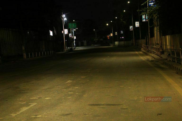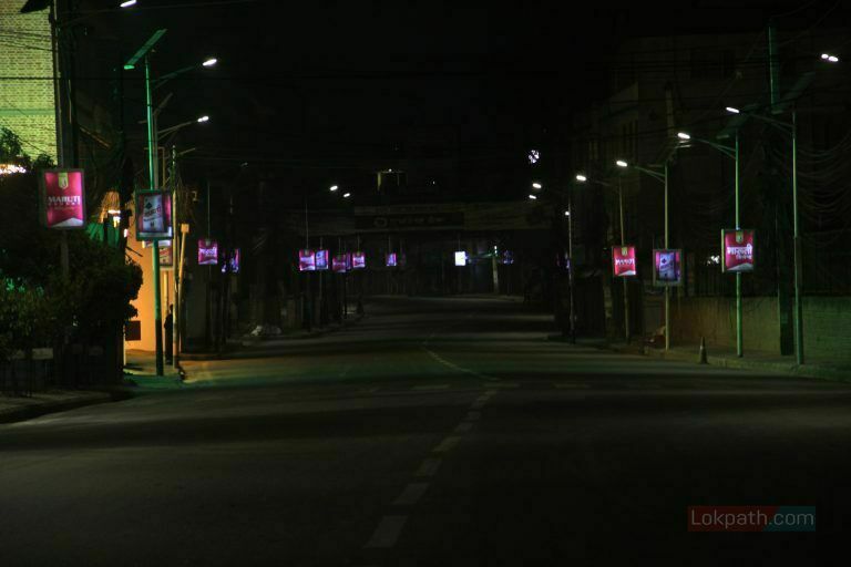 काठमाडौं । विश्वमा महामारीको रुपमा फैलिएको कोरोना भाइरस संक्रमणको जोखिम न्यूनिकरणका लागि सरकारले मंगलवारबाट देशभर लकडाउन गरेको छ । लकडाउनको तेस्रो दिनको साँझ काठमाडौं सुनसान देखिएको छ । रातमा सधैँ झुम्नेगरेको काठमाडौंको दरवारमार्ग, जमल तथा ठमेल आसपासका क्षेत्रहरु बेला सुनसान देखिएको छ ।