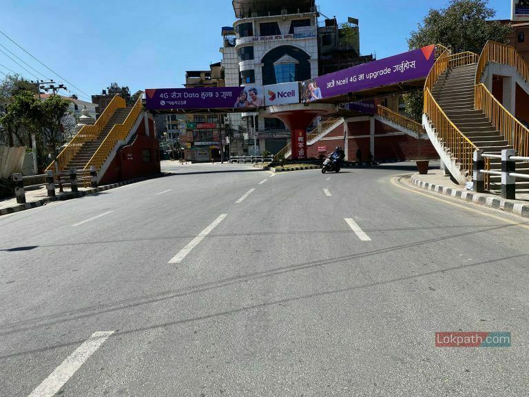 काठमाडौं । विश्वमा महामारीको रुपमा फैलिएको कोरोना भाइरस संक्रमणको जोखिम न्यूनिकरणका लागि सरकारले मंगलवारबाट देशभर लकडाउन गरेको छ । लकडाउनको छैटौं दिन काठमाडौं सुनसान देखिएको छ । सधैँजसो भिडभाड हुने काठमाडौं अहिले सुनसान बनेको छ ।