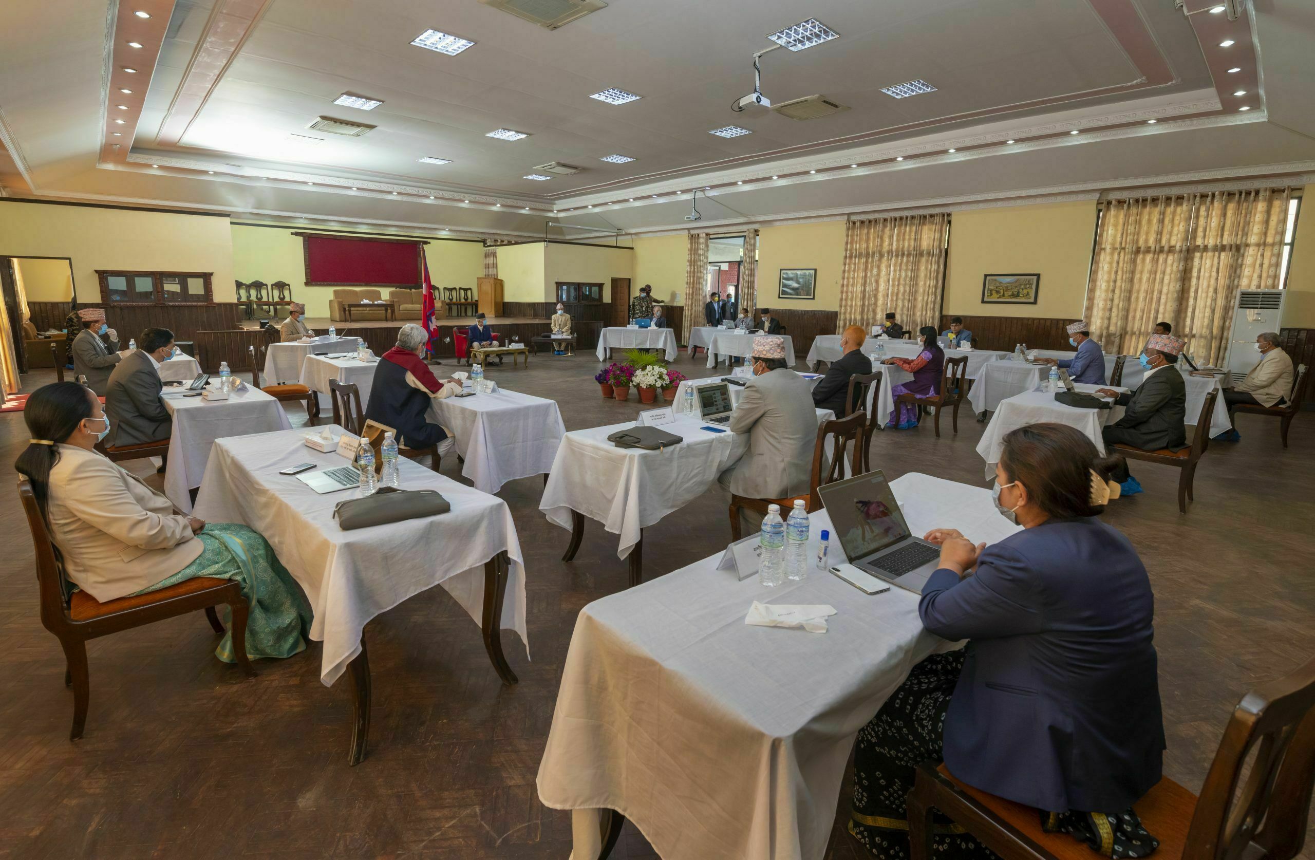 कोरोनाको त्रास: छुट्टा-छुट्टै टेबलमा मन्त्रीपरिषदको बैठक