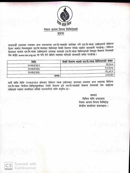 आयल निगमले उक्त परिणामको सिलिन्डरहरु बिक्रि गरिएको एक विज्ञप्तीमार्फत जनाएको हो ।