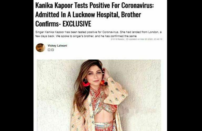 काठमाडौं । कोरोना भाइरस पोजिटिभ पाएपछि बलिउड गायिका कनिका कपूर २० मार्च लखनउको सञ्जय गान्धी पीजीआई (सञ्जय गान्धी पोस्ट ग्रेजुएट इन्स्टीट्युट अफ मेडिकल साइन्सेज) मा भर्ना भएकी छन् ।