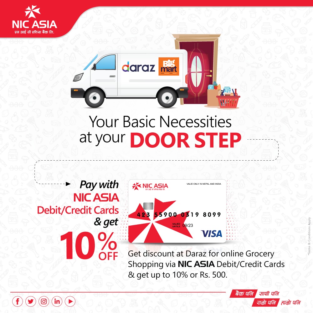 यो योजनामा सहभागी हुन चाहने एन आई सी एशिया बैंक लिमिटेडका ग्राहक महानुभावहरूले २०७६ चैत्र १८ गते देखि चैत्र २६ गतेसम्म www.daraz.com.np मा गई बिग मार्टका सामानहरू अनलाइन खरिद गर्नुपर्ने हुन्छ ।