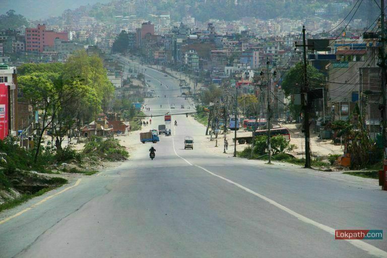 अरुबेला एकदम व्यस्त र सवारीको चापाचाप हुने काठमाडौंका सडकहरु सुनसान भएका छन् । सडकमा सेना, प्रहरी, पत्रकार तथा एम्बुलेन्स र अति आवस्यकिय सवारी साधन मात्र देखिएको छ ।
