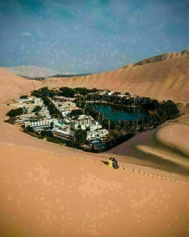 यो दृश्य हेर्नुहोस् त । वा ! कति सुन्तर कुनै आर्टिस्टले रंग्याएको क्यानभास जस्तो लाग्ने यो दृश्य हो, दक्षिण अमेरिकी मुलुक पेरुको हुआकाचिना गाउँ ।
