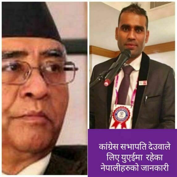 काठमाडौं । विश्श्वभर फैलिएको कोरोना भाईरस कोभिड-१९ ले विश्वलाई नै त्रसिद बनाईरहेको बेला युएईमा रहेका नेपालीहरुको अबस्थाबारे नेपाली कांग्रेसका सभापति शेर बहादुर देउवाले नेपाली जनसम्पर्क समिति युएईका सभापति भुवानीप्रसाद तिमल्सिनासँग फोन मार्फत जानकारी लिएका छन्।