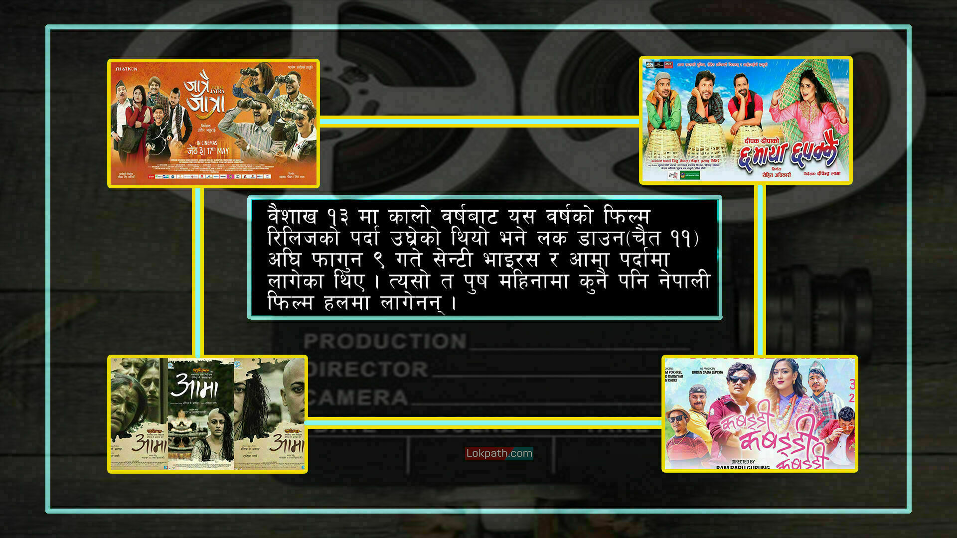 वैशाख १३ मा कालो वर्षबाट यस वर्षको फिल्म रिलिजको पर्दा उघ्रेको थियो भने लक डाउन(चैत ११ ) अघि फागुन ९ गते सेन्टी भाइरस र आमा पर्दामा लागेका थिए । त्यसो त पुष महिनामा कुनै पनि नेपाली फिल्म हलमा लागेनन् । दशैँलाई लक्षित गर्दै फिल्म हलमा लगाउन मेकरबीच हानथापको अवस्था सिर्जना भएको थियो ।