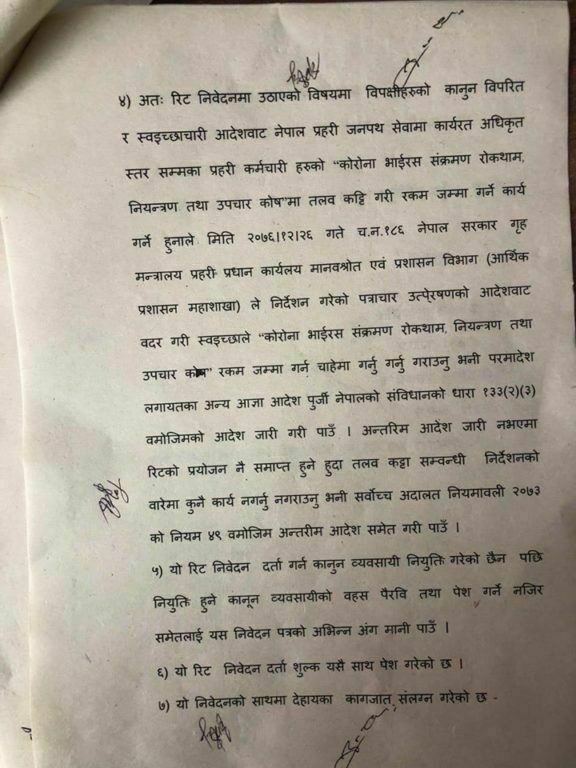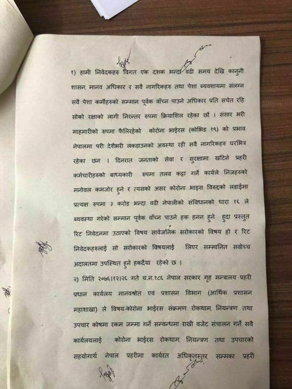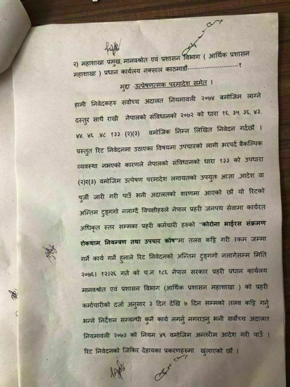 यस्तो संकटको बेला आफ्नै ज्यान जोखिममा रहेको सुरक्षाकर्मीहरुको तलब काट्न नहुने भन्दै अधिवक्ता टिका बहादुर कुँवरले सर्वोच्चमा रिट दायर गर्न लागेका थिए। तर सर्वोच्चले उक्त रिट दरपिट नगरी फिर्ता पठाएको छ।