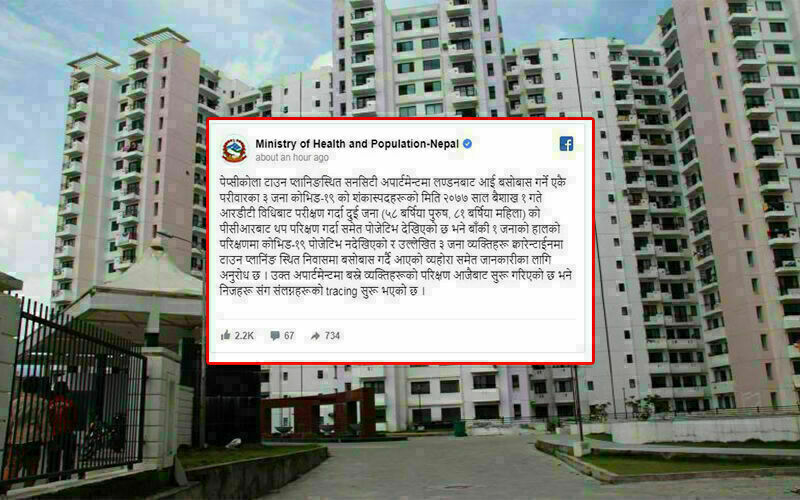 चैतको पहिलो हप्ता बेलायतबाट नेपाल आएर सोही अपार्टमेन्टमा बस्दै आएका उनीहरु तीन जनाको स्वाब संकलन गरी थप परीक्षणका लागि टेकुस्थित राष्ट्रिय जनस्वास्थ्य प्रयोगशाला पठाइएकोमा २ जनाको रिपोर्ट पोजेटिभ आएको हो ।