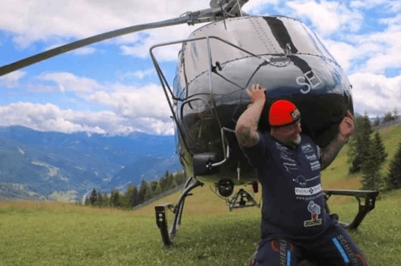 यसरी हेलिकोप्टर काँधमा बोक्ने मान्छे हुन, फ्रान्ज मुलेनर । उनी विश्वका सबैभन्दा बलवान मानिस हुन् ।
