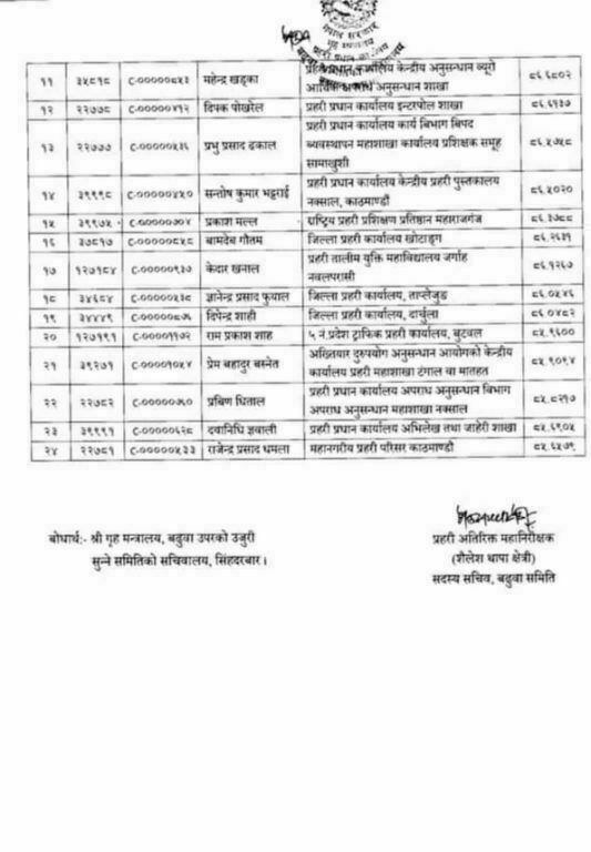 बढुवा सिफारिस हुने डिएसपीहरुमा तुलबहादुर कार्की, होविन्द्र बोगटी, बेद विष्ट, राकेश सिंह,राजिव बहादुर वस्नेत, प्रविणलाल श्रेष्ठ, सन्तोष सिंह राठोर, शिवकुमार श्रेष्ठ,महेन्द्र थापा, दिपक पोखरेल,प्रभु प्रसाद ढकाल, संजयसिंह थापालगायत छन् ।