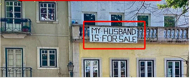 जसका कारण उनकी श्रीमतीले घरको बाहिर एउटा बोर्डमा आफ्ना श्रीमान बेच्न चाहेको लेखेर टाँसेकी छन् । उनले २४ सै घण्टा सँगै बस्नु परेकोमा दिक्क लागेकोले यस्तो लेखेर टाँसेको बताएकी छन् ।