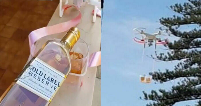This guy uses his drone to share bottle of Johnnie Walker with his neighbours while following lockdown rules. #Straya