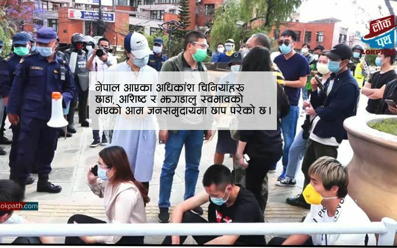 काठमाडौँ । नेपालमा चिनियाँ नागरिकहरूको आगमन र उपस्थितिमा उल्लेखनीय बृद्धि भए सँगसँगै गैरकानुनी र आपराधिक गतिविधिमा पनि त्यही मात्रामा बृद्धि हुँदै गएको देखिन्छ । गत शुक्रबार, बैशाख २६ मा नेपालमा रहेका करिब ४५ जना चिनिया नागरिकहरू सिंहदरबार अगाडिको जुलूस प्रदर्शन गर्न निषेधित क्षेत्रमा प्लेकार्डसहित धर्ना दिँदै आफूहरू स्वदेश फर्किन चाहेको र फर्काईदिने व्यवस्था गर्न नेपाल सरकारसँग माग गरेको विषयले आखिर प्रहरीबिरुद्ध ढुङ्गामुढा र हातपातको आपराधिक हर्कतमा उत्रिएपछि प्रहरीले सामान्य बल प्रयोग गरी उनीहरूलाई नियन्त्रणमा लिएको थियो ।