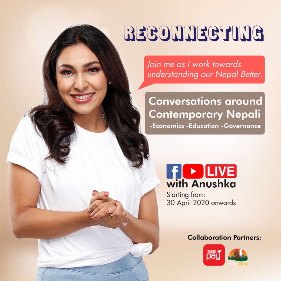 श्रेष्ठले संवाद गर्ने शिर्षक #Reconnecting रहनेछ, जुन अनुष्का श्रेष्ठको फेसबुक पेज र युट्युब च्यानलका साथै आईएमई पेको फेसबुक पेजमा प्रत्यक्ष (लाइभ) प्रसारण हुनेछ ।