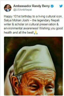१०१ वर्ष पुगे संस्कृतिविद् सत्यमोहन जोशी, अमेरिकी राजदूतको ट्वीट- सुस्वास्थ्यको कामना