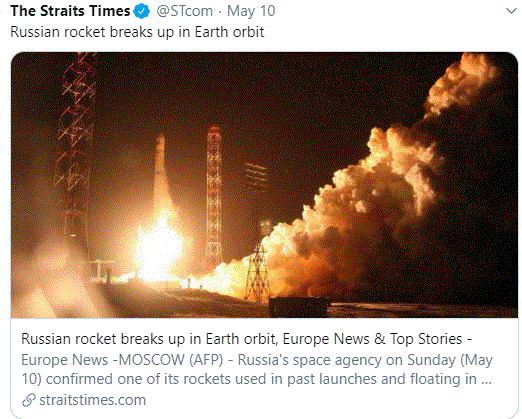 साथै उक्त टुक्राहरु पृथ्वीको माथि घुमिरहेको बताइएको छ । अन्तरिक्ष एजेन्सी नासा तथा युरोपीयन स्पेस एजेन्सी ईएसएले पनि रुसको यो रकेटलाई ट्रयाक गरिरहेका छन् ।