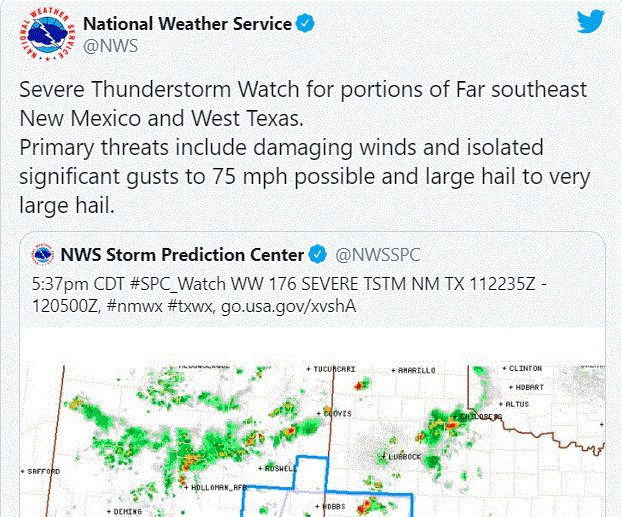 5:37pm CDT #SPC_Watch WW 176 SEVERE TSTM NM TX 112235Z – 120500Z, #nmwx #txwx, https://t.co/Q3JHEAqv0u pic.twitter.com/vPFCYRtTU3