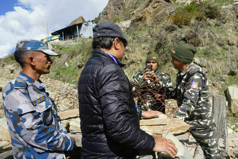 दार्चुला जिल्लाको व्याँस गाउँपालिका-१ छाङरु (गागा)स्थित नेपाल-भारत सीमा जोडिएको महाकाली नदीमाथिको काठेपुल (सीतापुल) मा गृहमन्त्रीका सुरक्षा सल्लाहकार प्राडा इन्द्रजित राईसँग कुरा गर्दै भारतीय एसएसबीका प्रतिनिधि । साथमा छाङरुस्थित सुरक्षा निगरानी पोष्टका प्रमुख सशस्त्र प्रहरी निरीक्षक लिलीबहादुर चन्द ।सरकारले नेपाल-भारत सीमा क्षेत्र दार्चुलाको व्याँस गाउँपालिका-१ छाङरु (गागा) मा स्थापना गरेको सीमा निगरानी चौकी (विओपी) को आवश्यक व्यवस्थापनमा जुटेका सशस्त्र प्रहरी । बुधबार यहाँ सो चौकी स्थापना भएको थियो ।