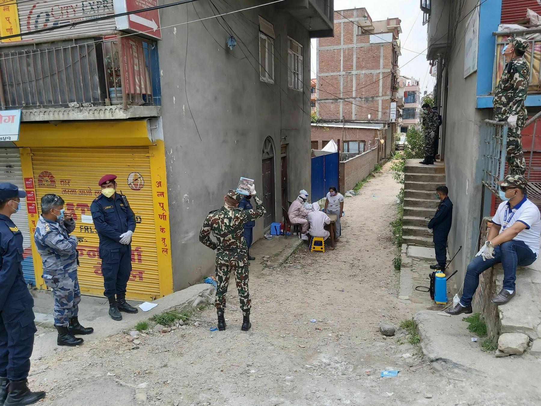 महानगरीय प्रहरी परिसर भक्तपुरका प्रहरी उपरीक्षक सविन प्रधान, नेपाली सेनाको बीरुदल गण सूर्यविनायकका गणपति कर्णेल शिव पौडेल, सशस्त्र प्रहरी दुवाकोट गणका प्रहरी उपरीक्षक विश्व भट्टराईसहितको संयुक्त सुरक्षा फौजको नेतृत्वमा भक्तपुर अस्पतालको चिकित्सकसहितको प्राविधिक टोली र आरएनए १६ ग्रुपका दुई सदस्यसहितको टोलीले आज स्वाब सङ्कलन गरेका हुन् ।