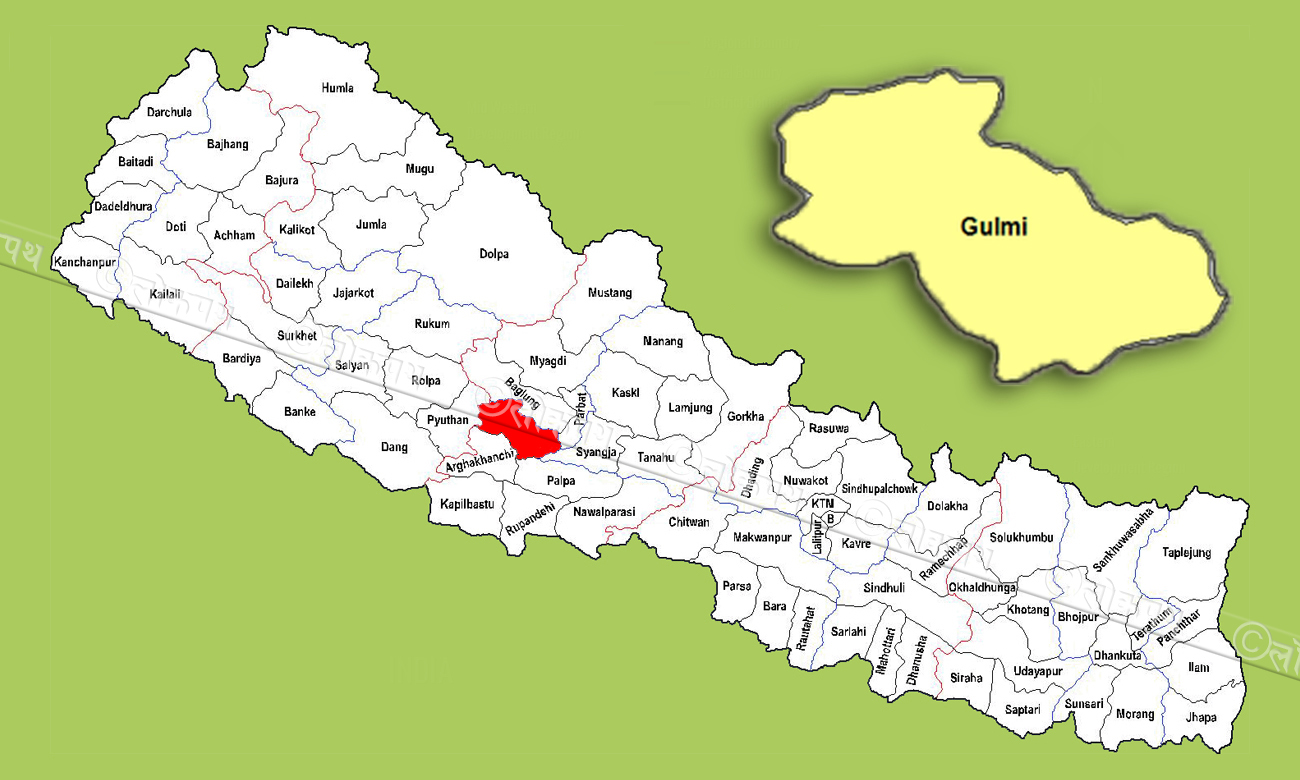गुल्मिमा पहिलोपटक कोरोना संक्रमण पुष्टि भएको छ । आज स्वास्थ्य मन्त्रालयले गरेको मिडिया ब्रिफिङ स्वास्थ्य मन्त्रालयका प्रवक्ता डाक्टर विकास देवकोटाका अनुसार गुल्मिका ४१ वर्षीय पुरुषमा कोरोना संक्रमण पुष्टि भएको हो । भैरहवाको प्रयोगशालमा गरिएको परीक्षणमा उनको रिपोर्ट पोजेटिभ आएको हो ।