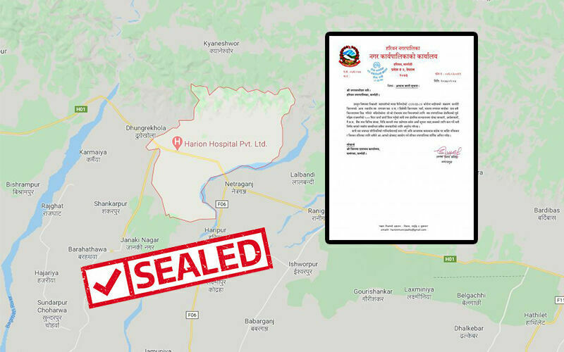 काठमाडौं । सर्लाहीको हरिवन नगरपालिका सील गरिएको छ । एक जनामा कोरोना भाइरसको संक्रमण देखिएपछि सर्लाहीको हरिवन नगरपालिका पूर्णरुपमा सील गरिएको हो ।