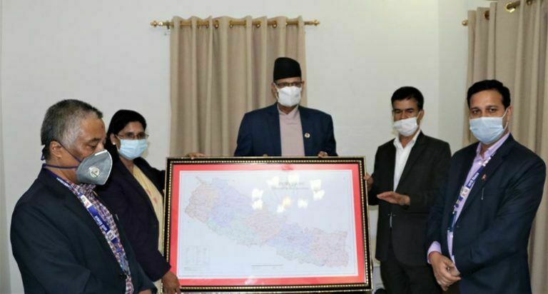 काठमाडौं । नेपाल सरकारले बिहीवार सार्वजनिक गरेको नेपालको अद्यावधिक (राजनीतिक र प्रशासनिक) नक्सा राष्ट्रपति, प्रधानमन्त्री सहित नेपाली कांग्रेसका सभापति शेरबहादुर देउवालाई हस्तान्तरण गरिएको छ ।